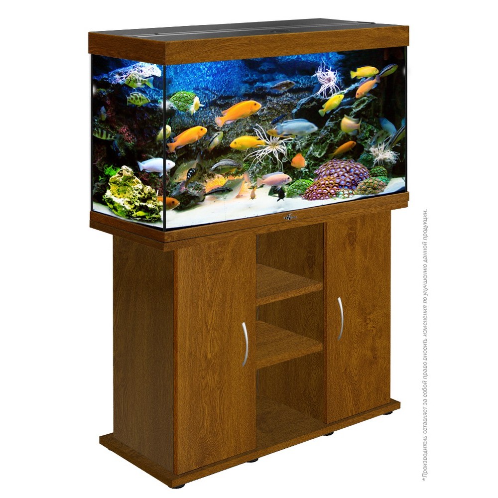 Шкаф каждой тумбы рассчитан на установку любого внешнего фильтра для этого объёма аквариума. Задняя стенка тумбы имеет технологические отверстия для вывода шлангов и проводов.